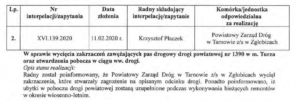 W ostatnim czasie złożyłem interpelację w sprawie poprawy bezpieczeństwa w ruchu drogowym w miejscowości Turza.